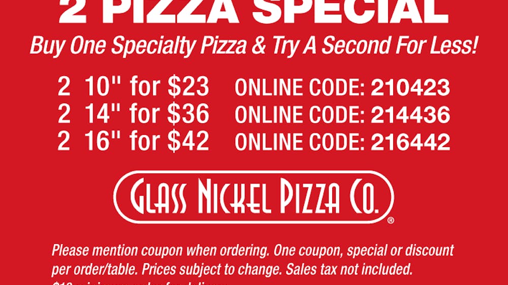 2 Pizza Special Glass Nickel Pizza Co In Wisconsin
